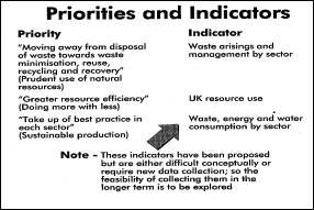 Synopsis of high/medium/low sustainability indicators for 5, 10,20 year outlook in the context of DETR indicators. Are there any? What should they be? (Focuson material balance of the future - compare and contrast to 1999).