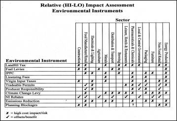 (i) We suggest that externally imposed financial instruments are lessadaptable, flexible and market sensitive as mechanisms likely to flow fromvoluntary schemes operating in specified product sectors. Producer Responsibility, backed by targets, voluntarily agreed TradeablePermit systems and fully transparent data collection systems, offer a preferableroute to sustainability in tune with market realities.